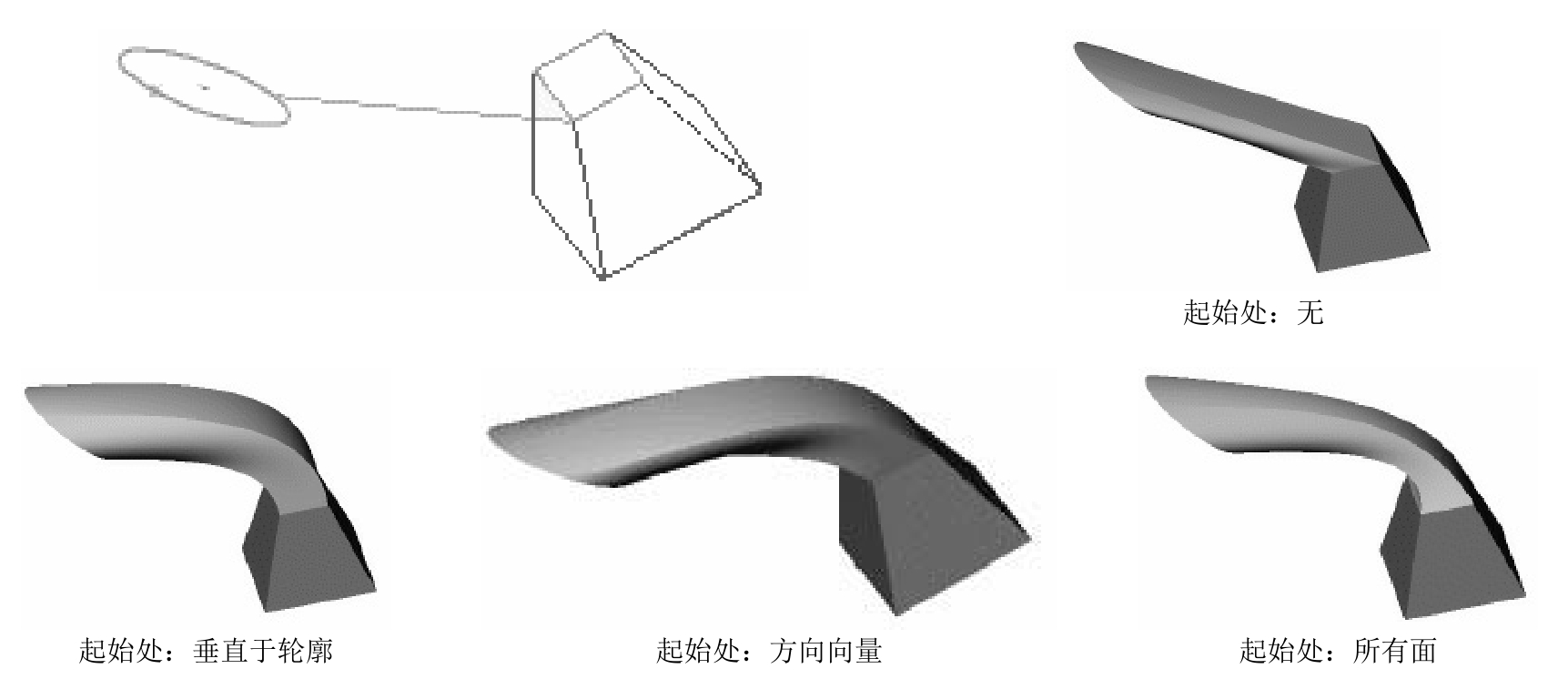 (8)通过“起始/结束约束”选项组可以控制草图、面或曲面边线之间的相切和放样方向。