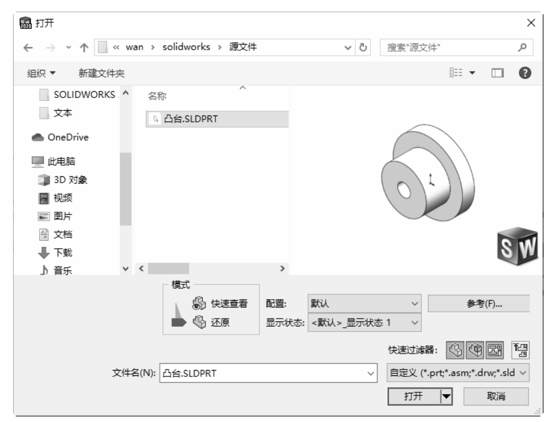 在SolidWorks 2020中,可以打开已存储的文件,对其进行相应的编辑和操作。打开文件的操作步骤如下。