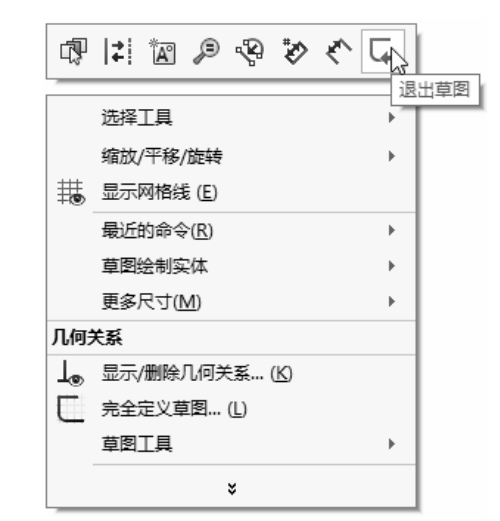 (3)利用快捷菜单方式:在图形区右击,弹出如图2-3所示的快捷菜单,选择“退出草图”命令,退出草图绘制状态。
