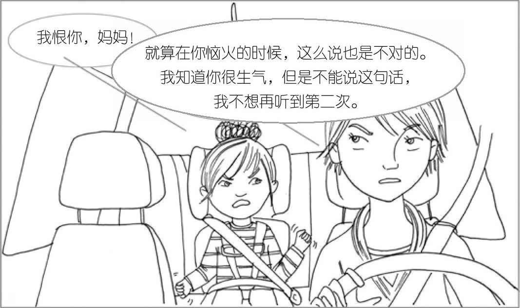 我从观察到的东西入手:“你很生气,对吗?”(还记得“聆听与关注”吗?)他夸张地扭曲着脸,又开始吐舌头,大声地说:“是的!”他没有得寸进尺,这让我大松一口气——以前他还会加一句他刚学到的最喜欢的脏话,叫我“屁股脸琼丝”(我发誓我不知道他从哪里学来的这玩意儿)。