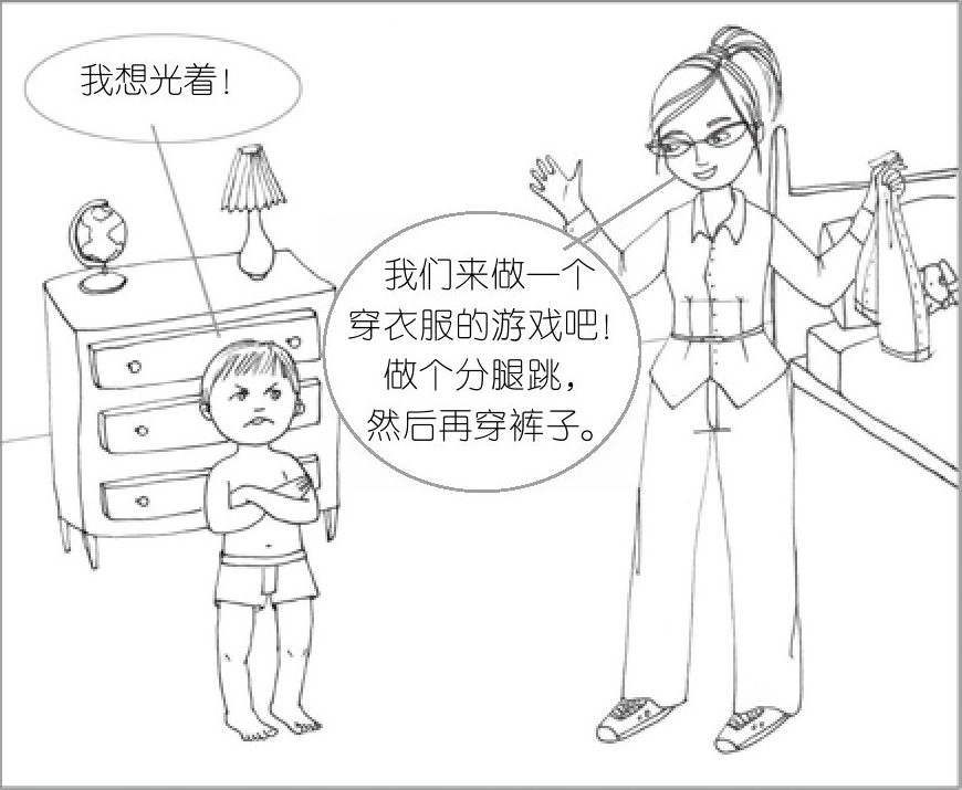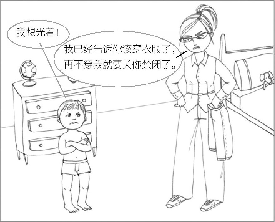 走传统的“命令和要求”路线,用严厉的陈词滥调威胁他:“不许做鬼脸了。过去坐下吃你的饭,否则就不给你吃甜点了。”