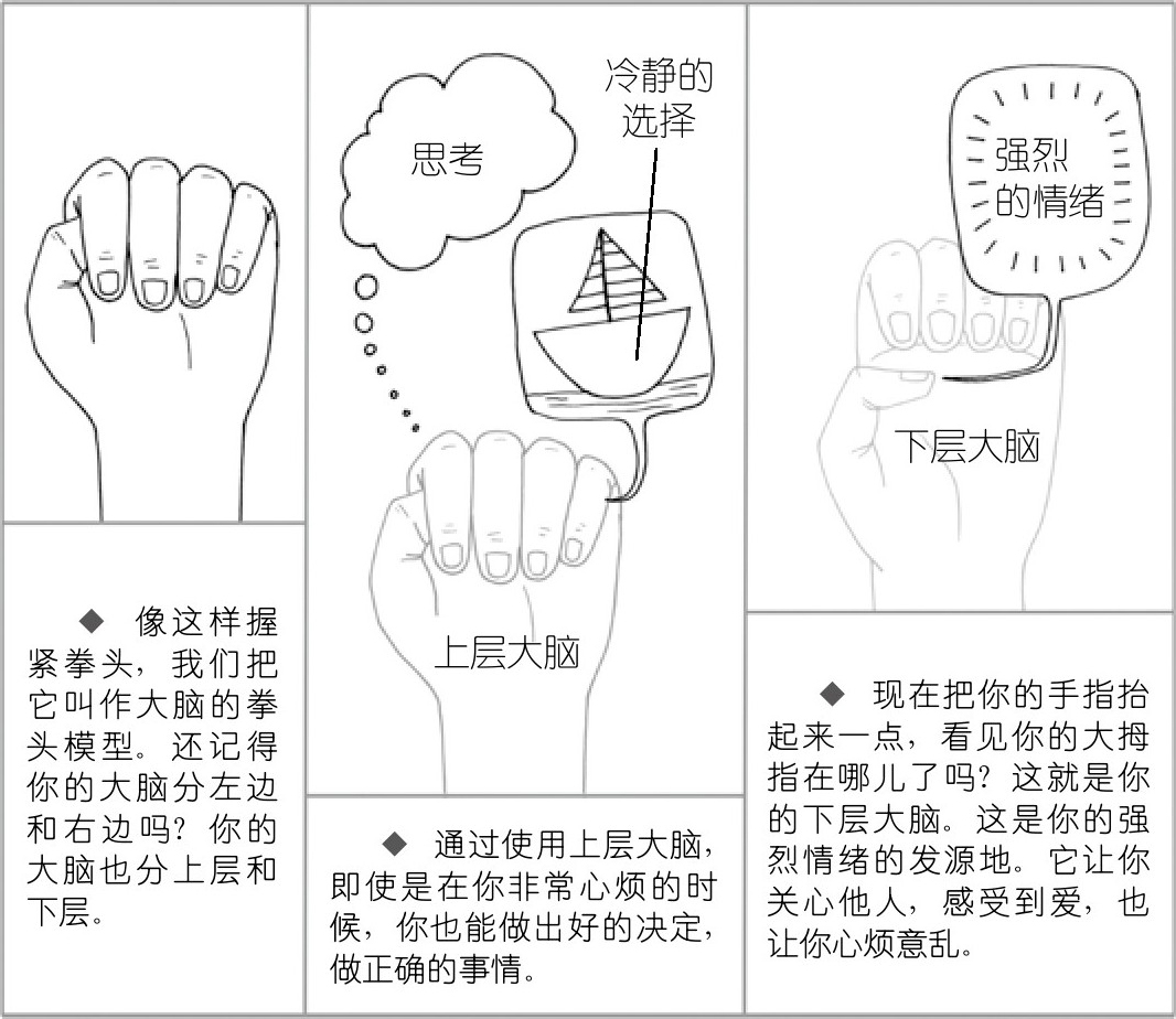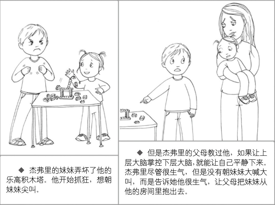 即使是很小的孩子,也有能力停下来思考,而不是用言语和拳头伤害别人。他们不可能永远做出正确的决定,但是只要经常练习各种方法而不是一味攻击,他们的上层大脑将会越来越强壮、越来越能干。