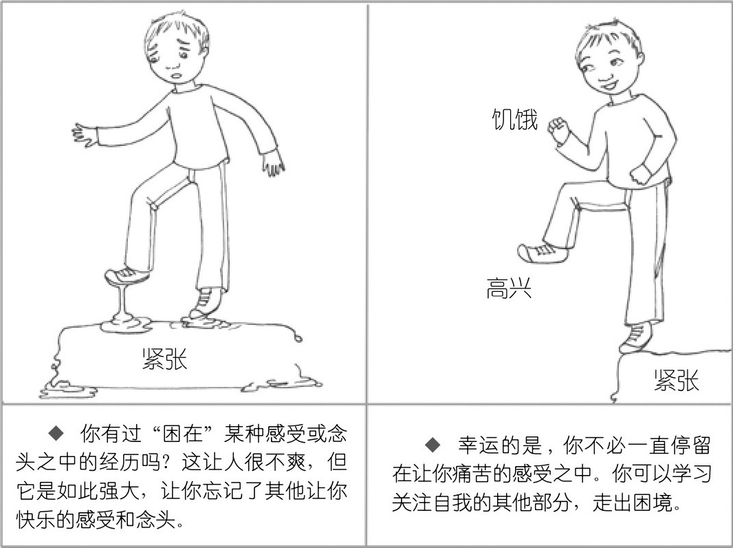 更小的孩子很显然需要你的帮助,但他们肯定也能理解感受的来去消减。孩子越能理解感受的产生和消逝,就越少执着于觉知之轮的外围,越能发自本源地去生活和做出选择。