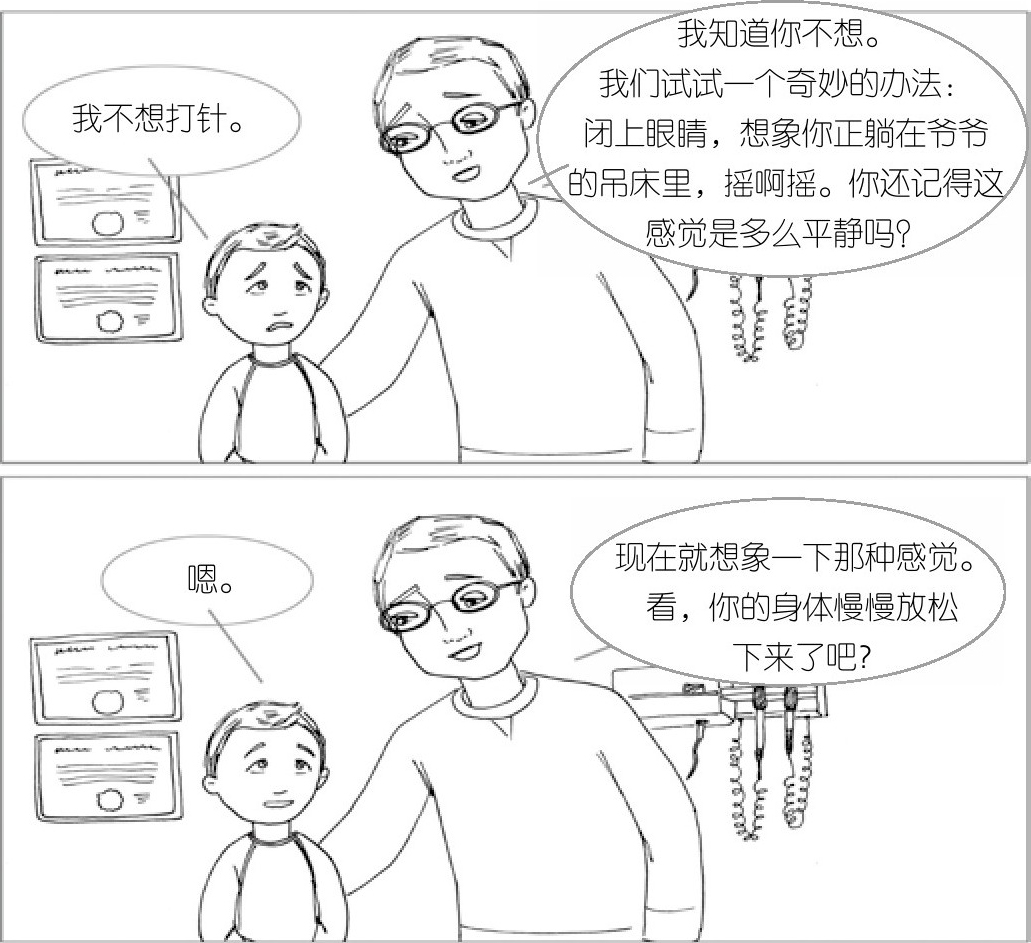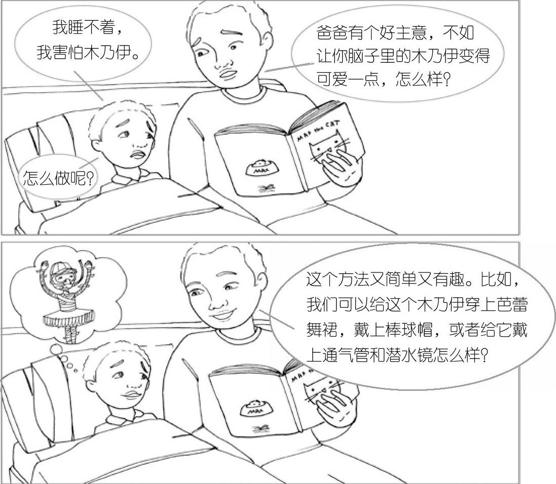 除感觉之外,我们还应该教孩子审查那些影响他们看待世界的方式的意象。有一些意象来自过去,比如父母亲躺在医院病床上或者自己在学校里遭到嘲笑。另一些则可能是由他们的想象或噩梦所臆造的,比如一个担忧自己会被遗弃或在课间被孤立的小孩,也许会想象自己一个人孤零零地荡秋千;一个非常害怕黑夜的小孩,他的恐惧可能来自噩梦之后留在记忆中的影像。如果孩子能够觉察到自己头脑中活跃的意象,他就能够用第七感来控制这些意象,并大力消除它们对自己的影响。