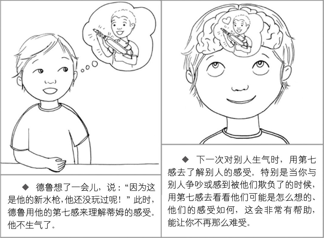 当孩子发展出第七感技巧,他们就能够学会在自己与他人的内心生活之间取得平衡。这些反思技巧同样也是孩子学习平静自己的情绪、理解周围人的情绪的基础。