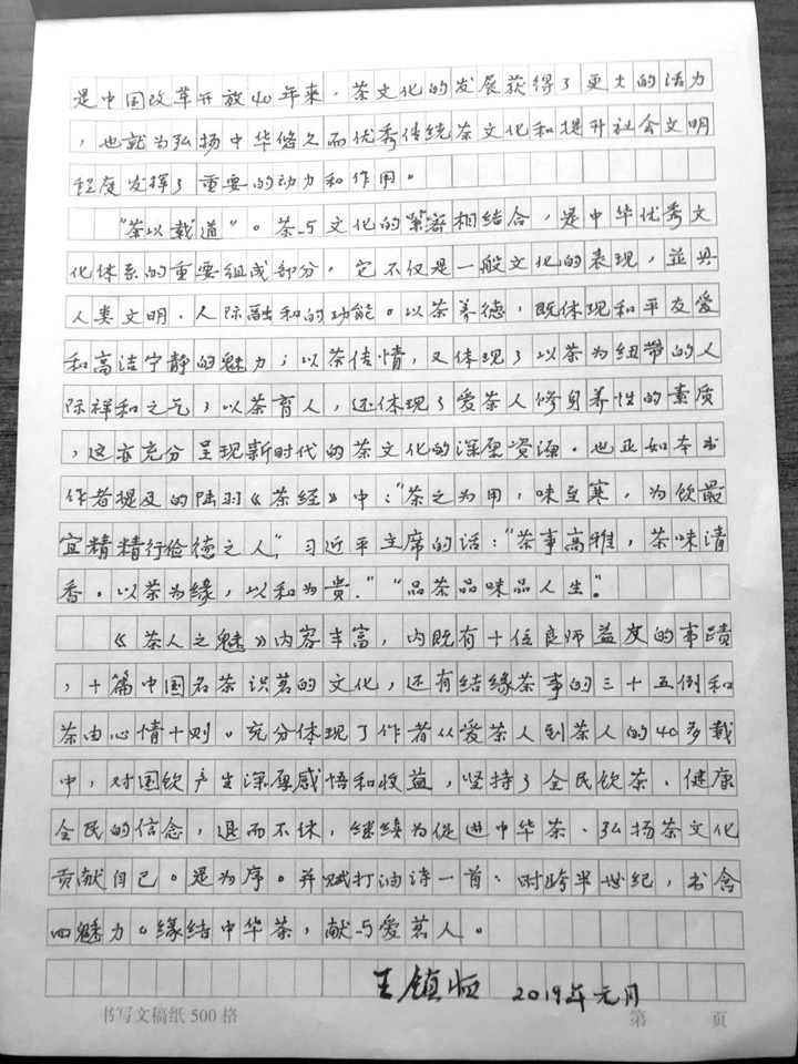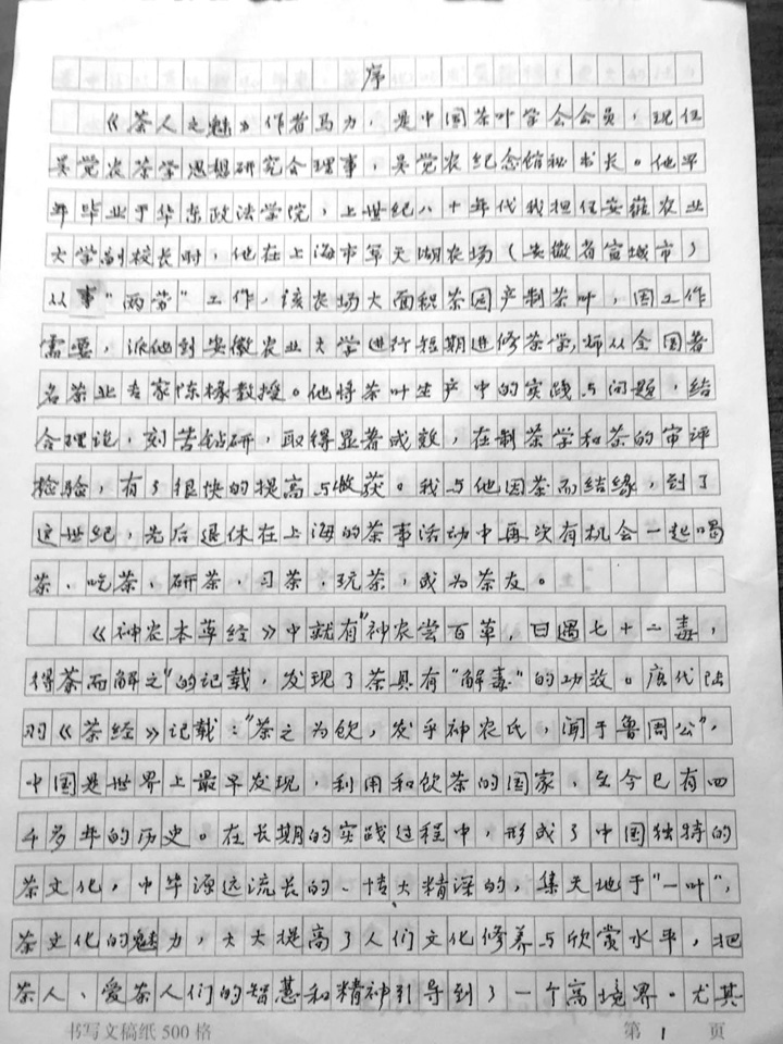 并赋打油诗一首:时跨半世纪,书含四魅力。缘结中华茶,献与爱茗人。