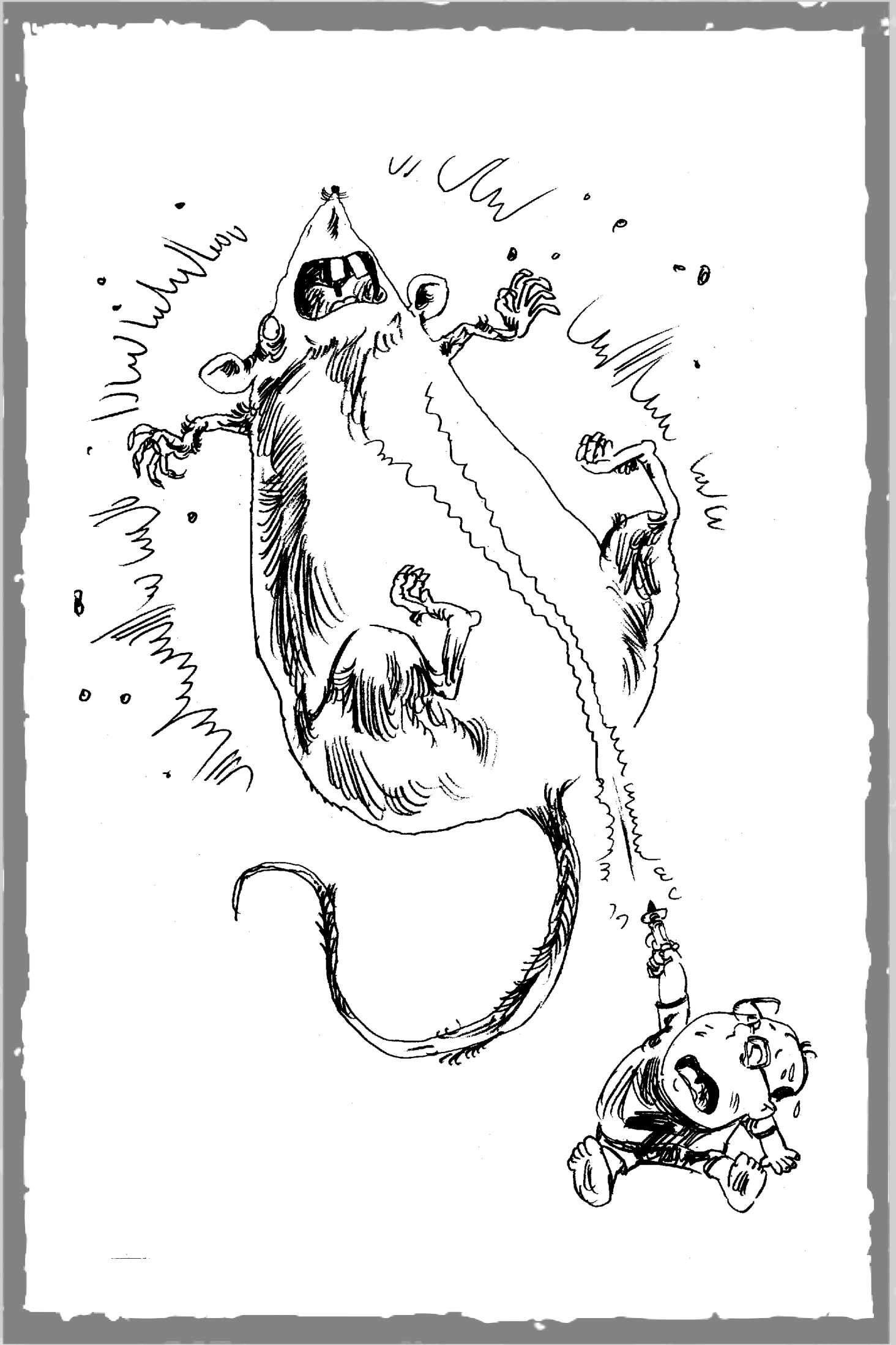 现在,爸爸正遭受一只又肥又大的老鼠的袭击,而他眼看就要成为老鼠口中的美食了!