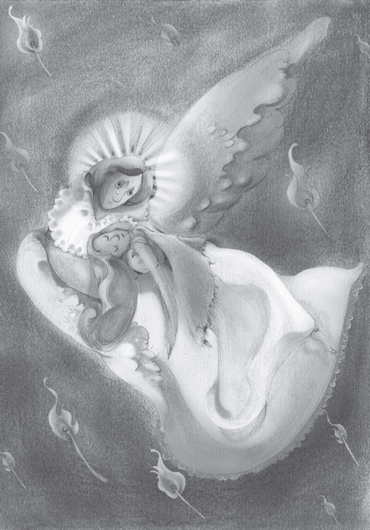 她赶紧划亮手中剩下的所有火柴,因为她要把她的老祖母留住。火柴燃烧着,那光比中午的光还亮,她的祖母从来没有那么高大或者那么美丽过。她把小女孩抱在怀里,她们双双在光明和欢乐中向上飞升,飞到一个没有寒冷、没有饥饿,也没有痛苦的地方,和上帝在一起。