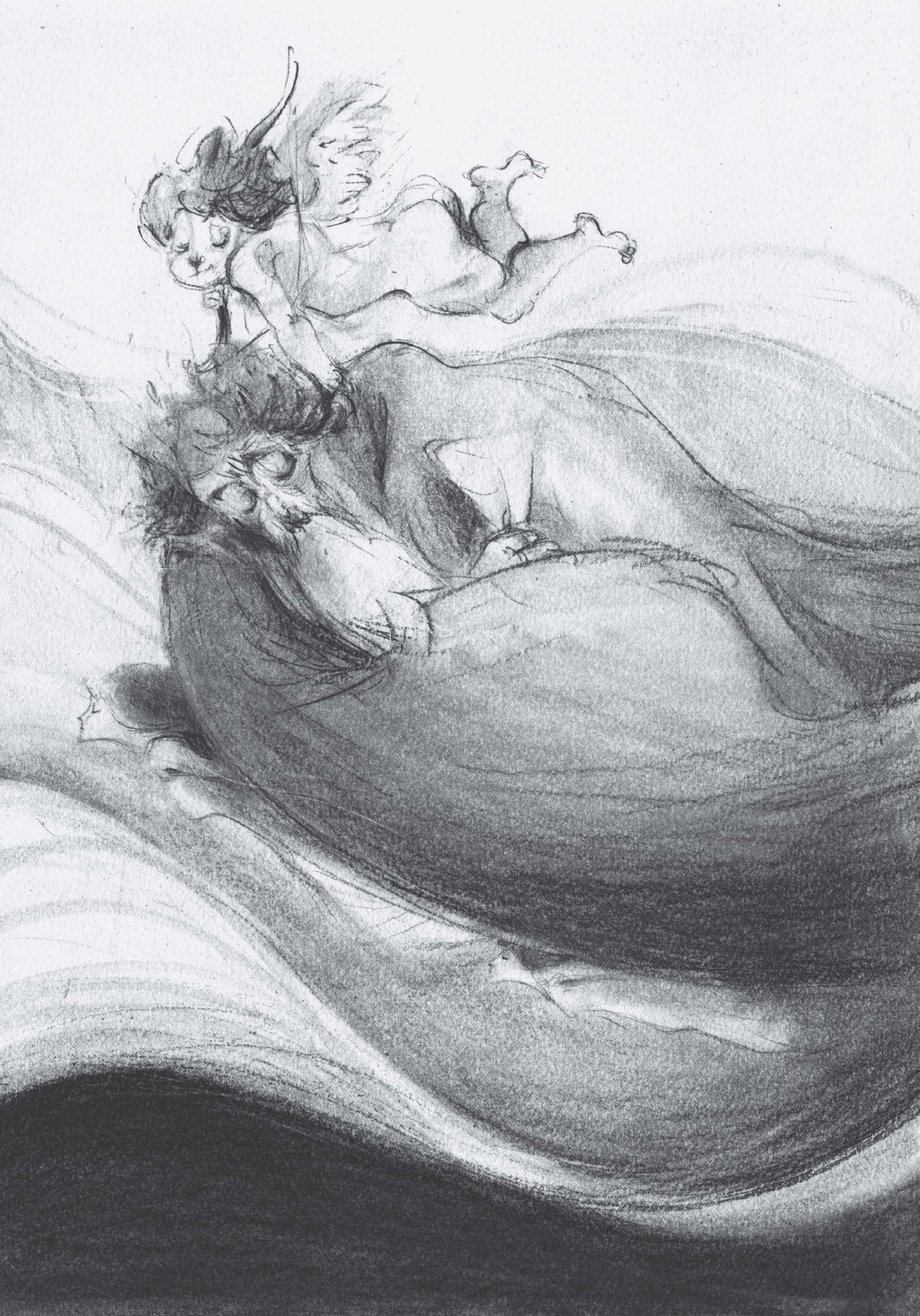 老诗人躺在地上哭,他的心真的被射中了。“噢!”他哭道,“这丘比特是个多么调皮的孩子啊!我要把这件事告诉所有的好孩子,让他们小心着永远不去和他玩,否则他会伤害他们的。”