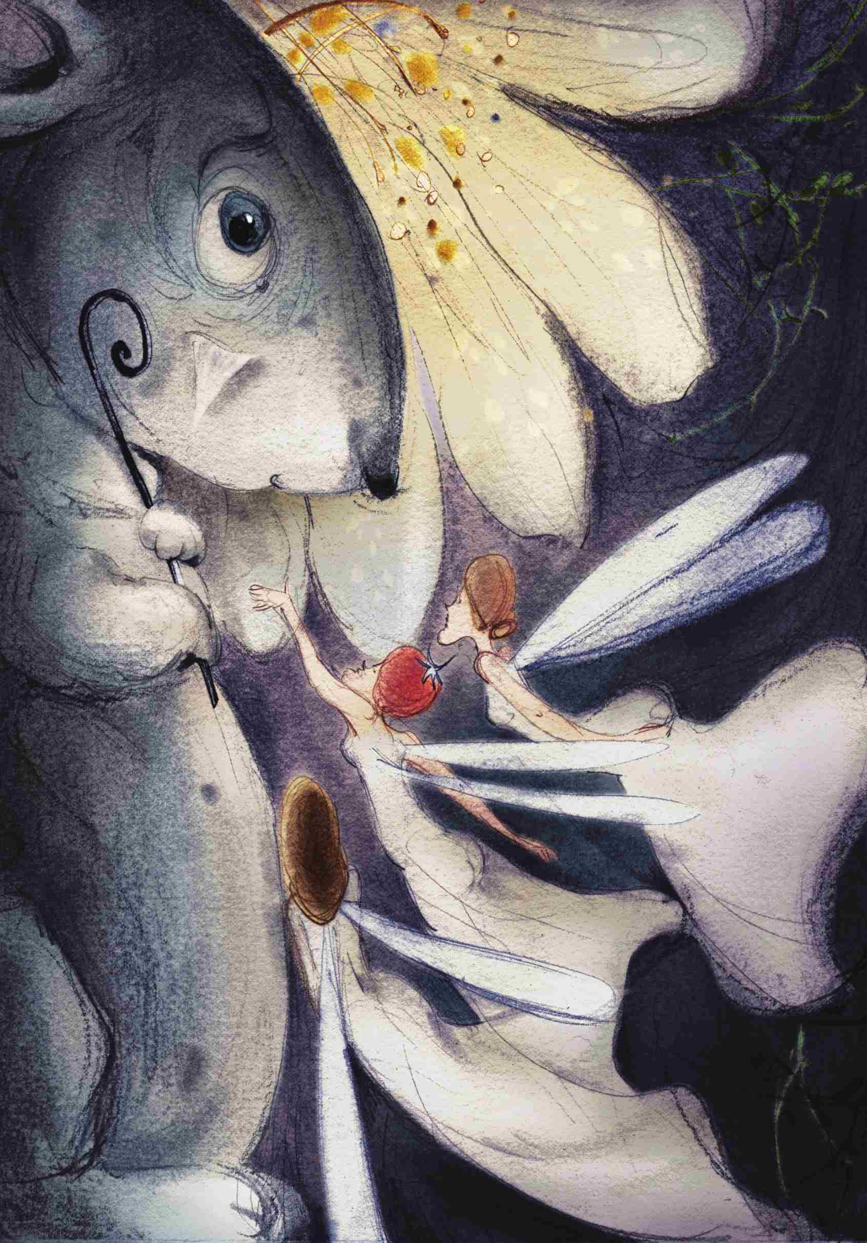 然后吹来一阵风,风大得把姑妈房间那锁着的门吹开了。姑妈跳起来,穿上鞋子,穿上衣服,走进我的房间。她说我这时睡得像个上帝的天使,她舍不得叫醒我。