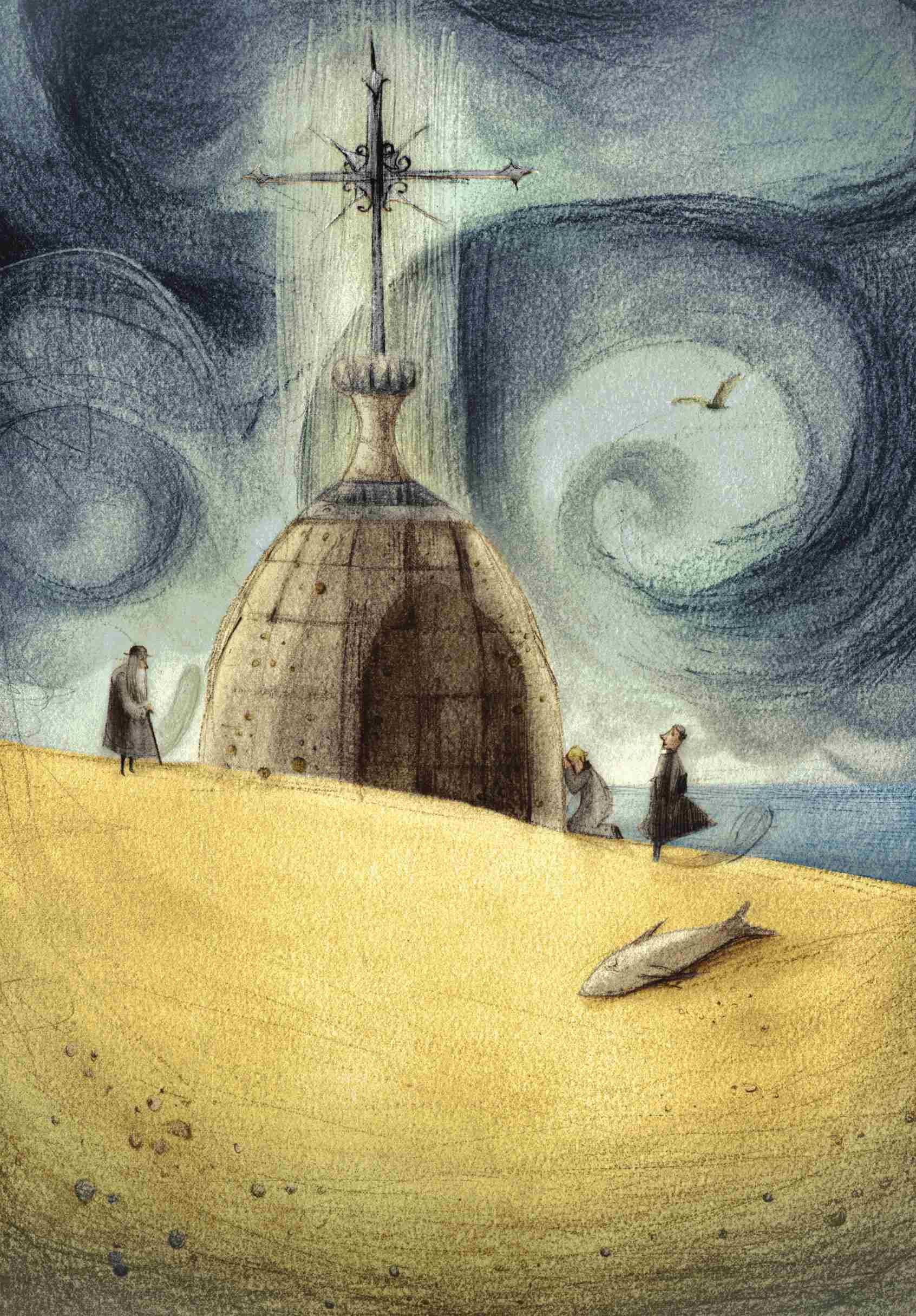 然后吹来一阵风,风大得把姑妈房间那锁着的门吹开了。姑妈跳起来,穿上鞋子,穿上衣服,走进我的房间。她说我这时睡得像个上帝的天使,她舍不得叫醒我。