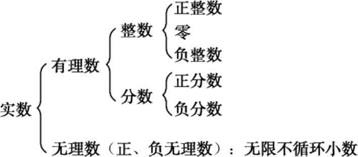 (2)有理数:整数和分数统称有理数,即正整数、负整数、分数和零统称有理数。