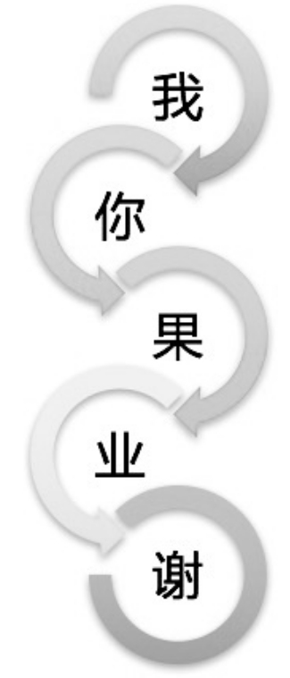 开场成功,就意味着培训主持的工作成功了一半,而后的串场工作占了另一半。一般来说,每次休息回来、每个半天的开始和结束培训,主持都要进行串场,主要包含两个动作:一是提醒大家已经学了什么,二是引出来接下来要学什么。串场主持时间不宜过长,一分钟左右较为合适,在把大家的注意力引回课堂之后迅速把讲台交给讲师。当然,过程中的串场,跟讲师的风格和要求有关,有的讲师更愿意自己做这些工作,那么培训主持就相对轻松一些。培训主持最后一次登台,就是在讲师宣布课程结束的时候。往往这个时候,学员会对讲师报以热烈的掌声,在掌声进行中,培训主持就应该做好准备,掌声一落,就开始自己的结束发言。同开场一样,我们可以根据发言内容针对的对象不同将其归纳为“我你果业谢”五件事,如图1-22所示。