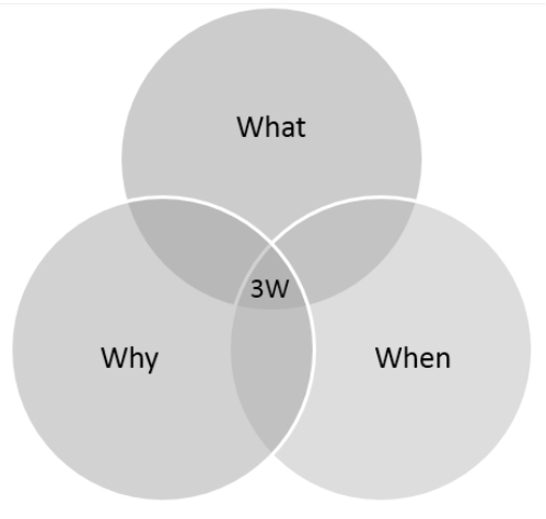 当然,如果你想要更加用心地做这件事,那么下面这个工具可以帮到你,我们把它称为“物料准备的3W模型”,如图1-4所示。