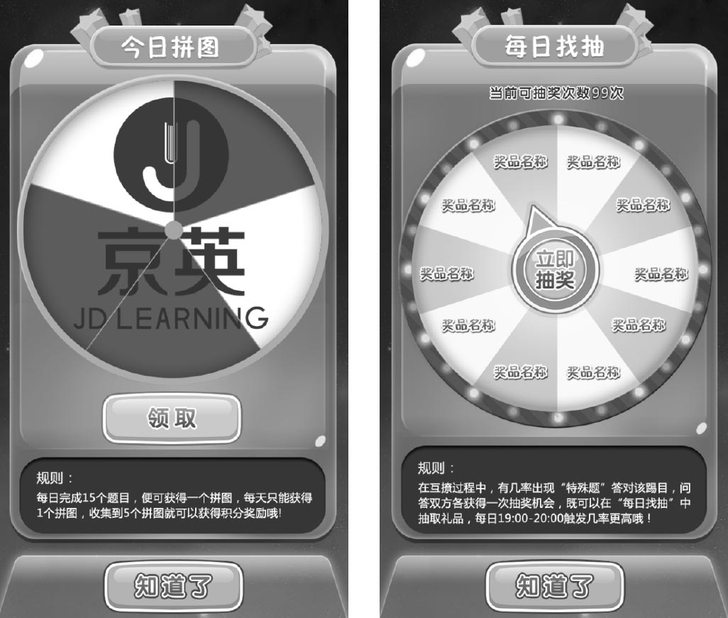 (2)学习运营,主要是通过策划征集平台Logo、全民参与竞答、获取积分及奖品等以使学员有“高度参与感”的活动,在最短的时间内打造平台知名度,为后续的用户导入奠定良好的基础。京东大学撩一撩游戏竞答如图8所示。