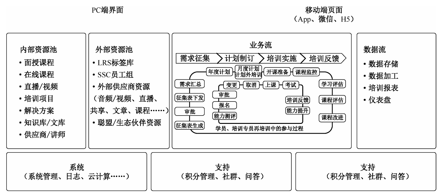 (2)综合分析企业培训规模、IT技术基础、培训团队组织、短期需求及长期的需求规划等综合因素,明确数字化学习平台的实施方式。