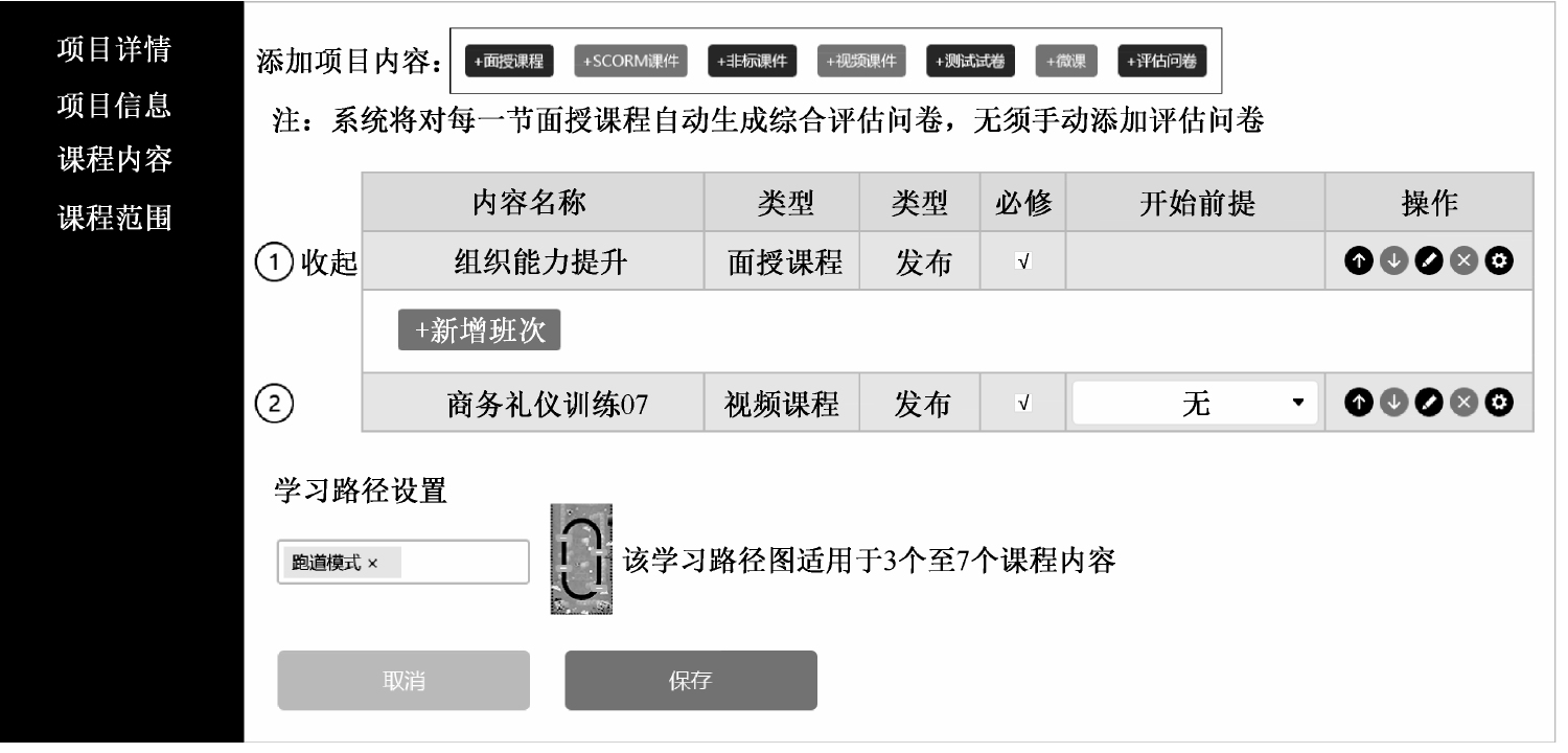 (4)内容数据:系统上线初期需要准备相应的内容同步,以进行内容体系建设,根据教学策略,按岗位、业务线条、学习地图等条件进行内容的上传。