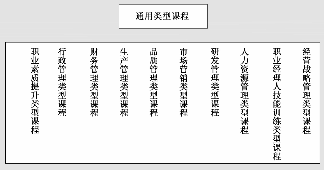 可以从岗位人数、专业度等维度来判定是否应引入通用类型课程的内容。这样不但可以大量节省人力和物力成本,还可以将经过多年验证的成功经验和案例引入进来,达到改进绩效的目的。通用类型课程的类型包括人际关系类型、心理辅导类型、领导力提升类型、团队管理类型等。