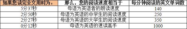 阅读马上开始,建议您计算一下阅读整篇文章所用的时间,对照下方的参考值就可以评估出您的英文阅读水平。