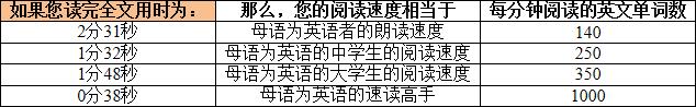 阅读马上开始,建议您计算一下阅读整篇文章所用的时间,对照下方的参考值就可以评估出您的英文阅读水平。