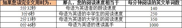 阅读马上开始,建议您计算一下阅读整篇文章所用的时间,对照下方的参考值就可以评估出您的英文阅读水平。