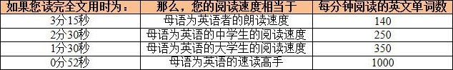 阅读马上开始,建议您计算一下阅读整篇文章所用的时间,对照下方的参考值就可以评估出您的英文阅读水平。
