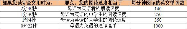 阅读马上开始,建议您计算一下阅读整篇文章所用的时间,对照下方的参考值就可以评估出您的英文阅读水平。