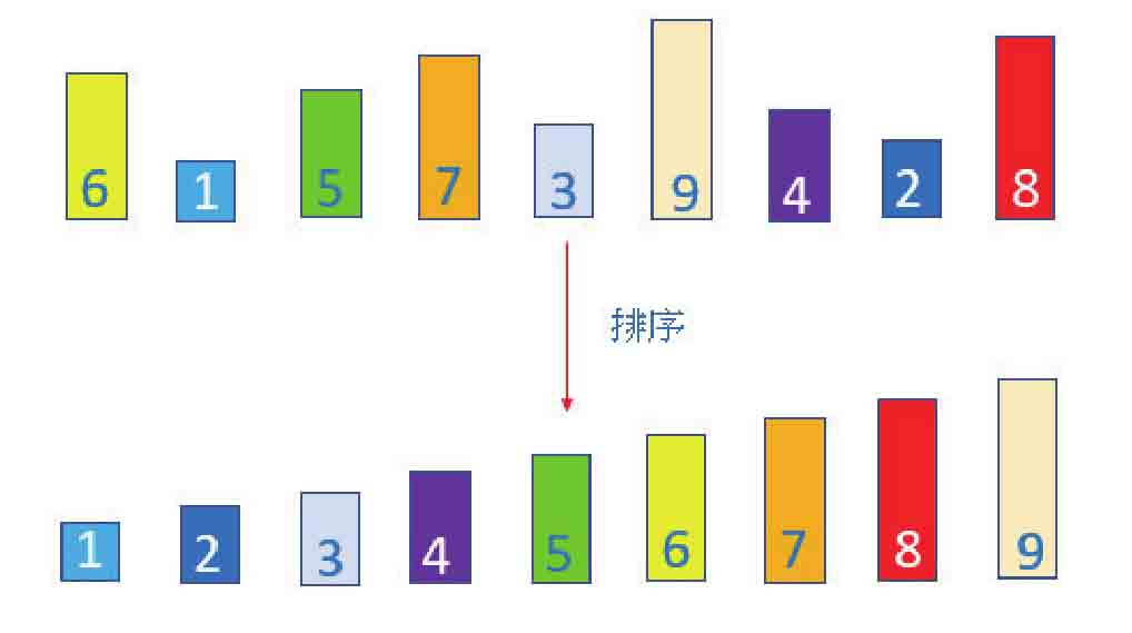 例如 ,有一系列数字,我们想将这一系列数字从小到大排序。