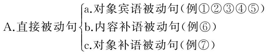 分析 被动性词组较多出现在文章中,给人以文雅的语感,表现的含义较被动态更为丰富多样,属于修辞方式的一种。学会使用这种表达方式可以避免单一语言形式的枯燥。