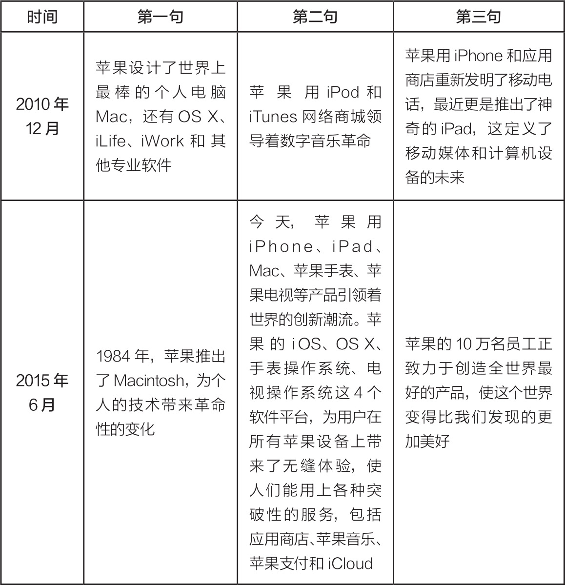 表1.3 苹果新闻稿的简介分析列表