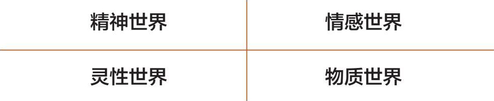 你必须了解一项重要事实,就是我们不是只生活在一个平面上,而是至少同时存在于四个不同的象限上。这四个象限是:物质世界,精神世界,情感世界,灵性世界。