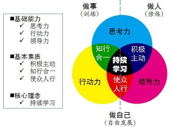 三大基本素质是思考力、行动力和领导力两两相交的衍生物,它们之间既有交叉关系,也有包含关系。积极主动、知行合一和使众人行这三大基本素质是促进我们在智能时代自由发展的关键要素,本书在第五章对它们进行重点阐述。