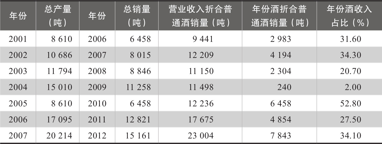 我提出一个概念,就是年份酒折合普通酒销量。比如2012年贵州茅台大约售出1.52万吨贵州茅台酒,2012年普通酒出厂价为685元。假如2012年贵州茅台销售的1.52万吨都是普通酒,则营业收入只有190多亿元,与265亿元的营业收入相比有较大差距。原因是2012年贵州茅台销售的1.52万吨贵州茅台酒还有15年、30年和50年年份酒。多出来的70多亿元是年份酒的营业收入。以2012年为例,贵州茅台大概销售了1.52万吨贵州茅台酒,如果全折合成普通酒的销量,大约2.3万吨。由此可以看出,贵州茅台的营业收入中有约1/3来自年份酒。
