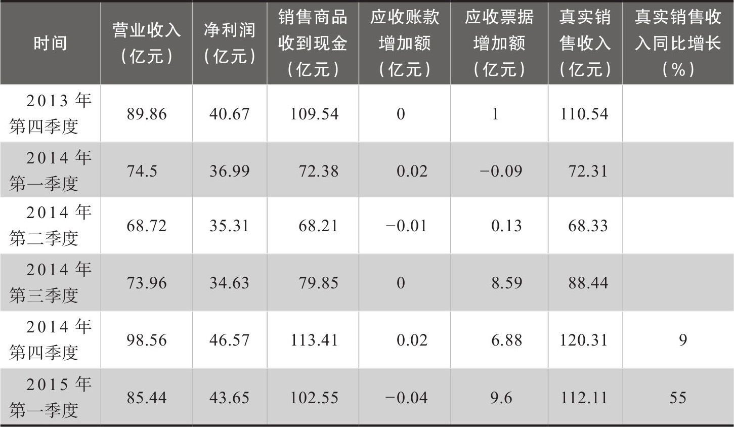 表1-7是我的助手统计的2013年第四季度到2015年第一季度6个季度大概的贵州茅台单季销售情况,误差在10%以内。我们进一步追问,为什么第二季度普通酒销量占比比第一季度明显减少?大体原因如下。