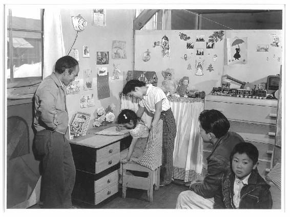 日本的孩子们也会有属于自己的玩具。父母或者是亲友都会送给孩子们布娃娃或其他玩具,这些玩具有些是自己做的,有些是买的。像一些生活不宽裕的家庭都是自己做玩具。孩子们会用这些玩具做游戏,如摆家家、当新娘、过节日等等。孩子们在游戏开始之前会先进行辩论,要确定实际生活中的大人们是怎么做的。这种争论有时候没有答案,便会请母亲裁决。如果孩子们为此而吵架,母亲就会说:“度量大的是贵人。”这让孩子学会忍让,有时也会说:“吃亏是福。”意思是,如果你把玩具先让给小孩子,等他玩腻了,这个玩具还是你的。哪怕三岁的孩子都能很快理解母亲的话。还有时候玩一些主仆游戏,母亲便让大一点的孩子做仆人,并教育他说当大家都高兴了,你也就获得了快乐。而这种“吃亏的人最后占便宜”的观念到了成年以后,也能得到众人的尊重。