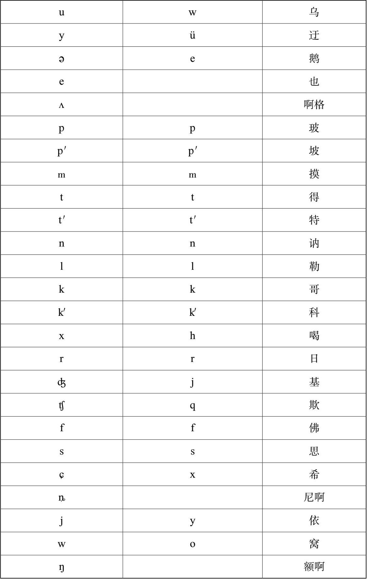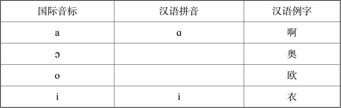 以上国际音标符号(包括元音)多数与汉语拼音发音方法相同,但有几个语音符号,如ɔ、ȵ、ŋ、ʌ等,在汉语拼音中没有相应的符号,所以只能用近似音的汉字来对照,其准确的发音方法只能在实践中去掌握。