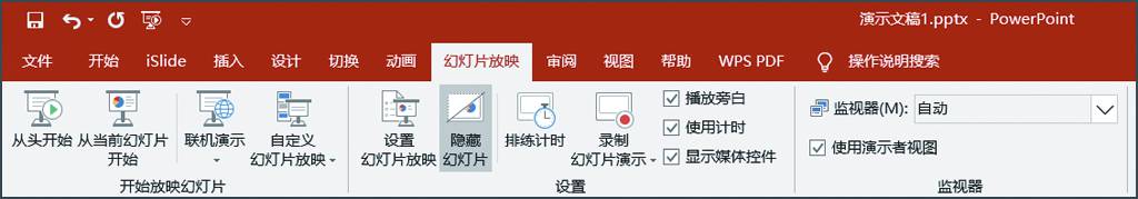 如果一份幻灯片需要在两种场合播放,而两种场合要看的页数不同,分成两个PPT又十分麻烦,那么“隐藏幻灯片”就派上用场了。