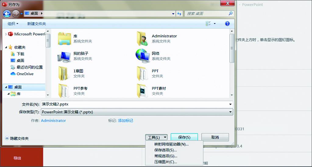 首先,打开该PPT文档,点击“开始”→“另存为”,在弹出的界面中,我们选择界面下方“工具”的下拉选项,选择其中的“压缩图片”,如图1.5-2所示。