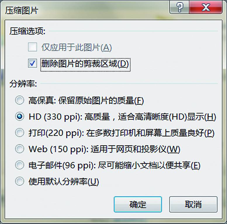 在弹出的页面中,根据实际情况,可以自行选择图像压缩的分辨率(ppi),如图1.5-3所示。如果压缩一次之后还达不到要求的标准,可以再次进行压缩,但要注意:多次压缩之后,可能会影响图片的分辨率。