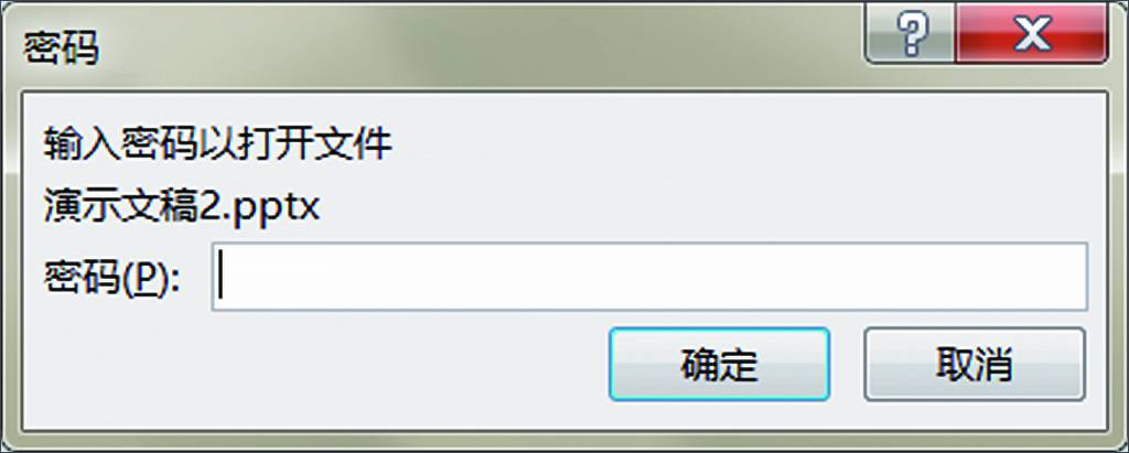(4)将PPT文件设置好密码之后,再打开文件会出现图1.5-7所示的提示框,这时,只有输入密码后才能看到演示文稿的内容。