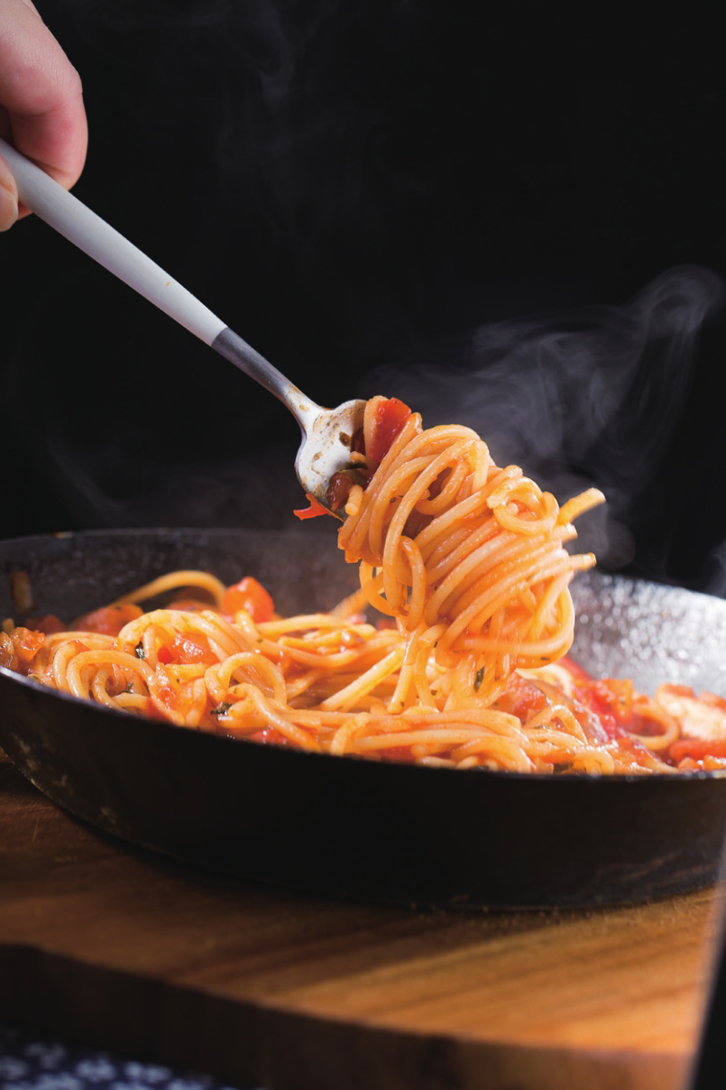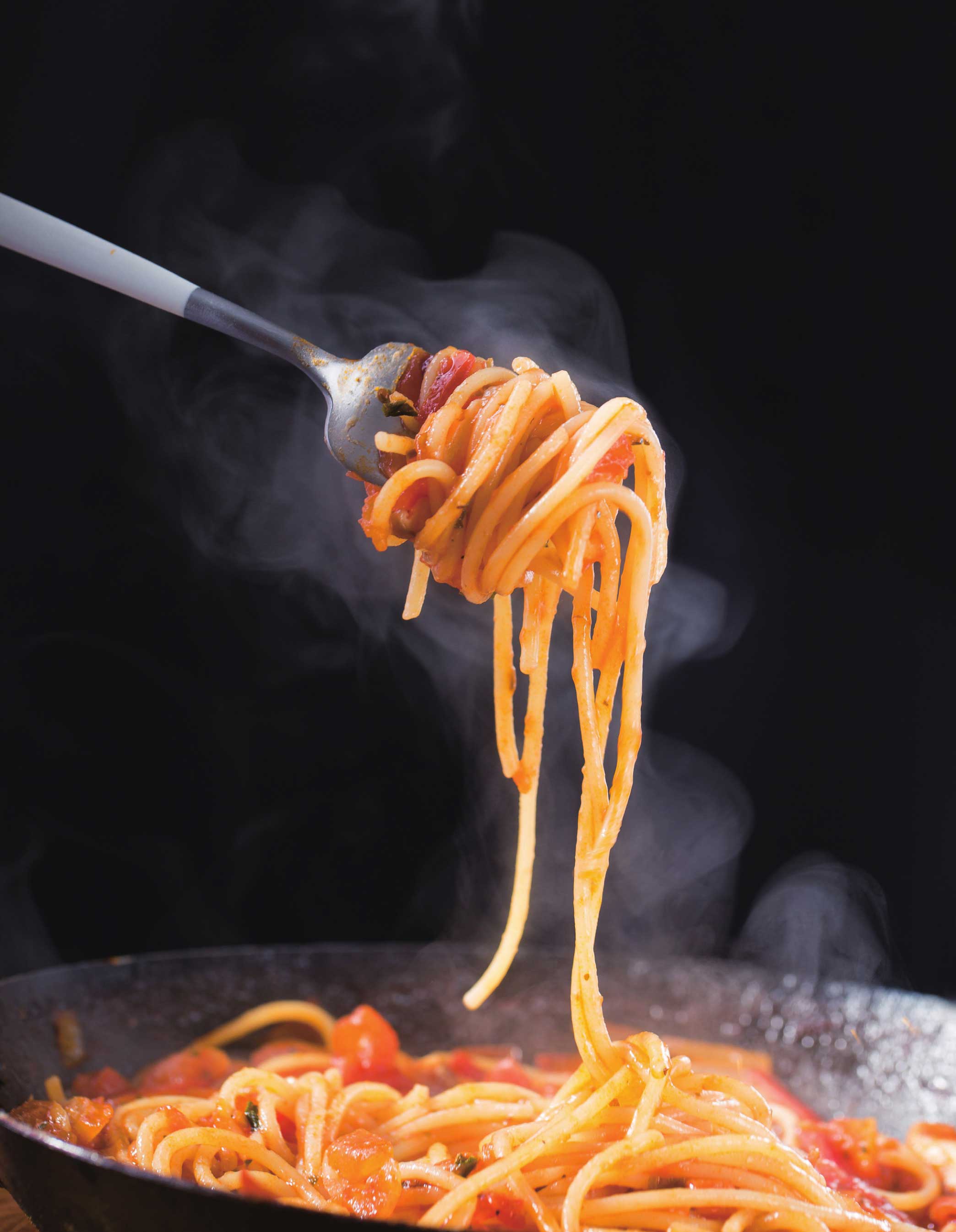 04 意粉不同形态的另一张素材。拍摄时,连锅一起拍进去,更有现场感,仿佛美食就在眼前。