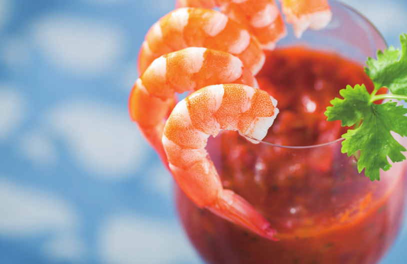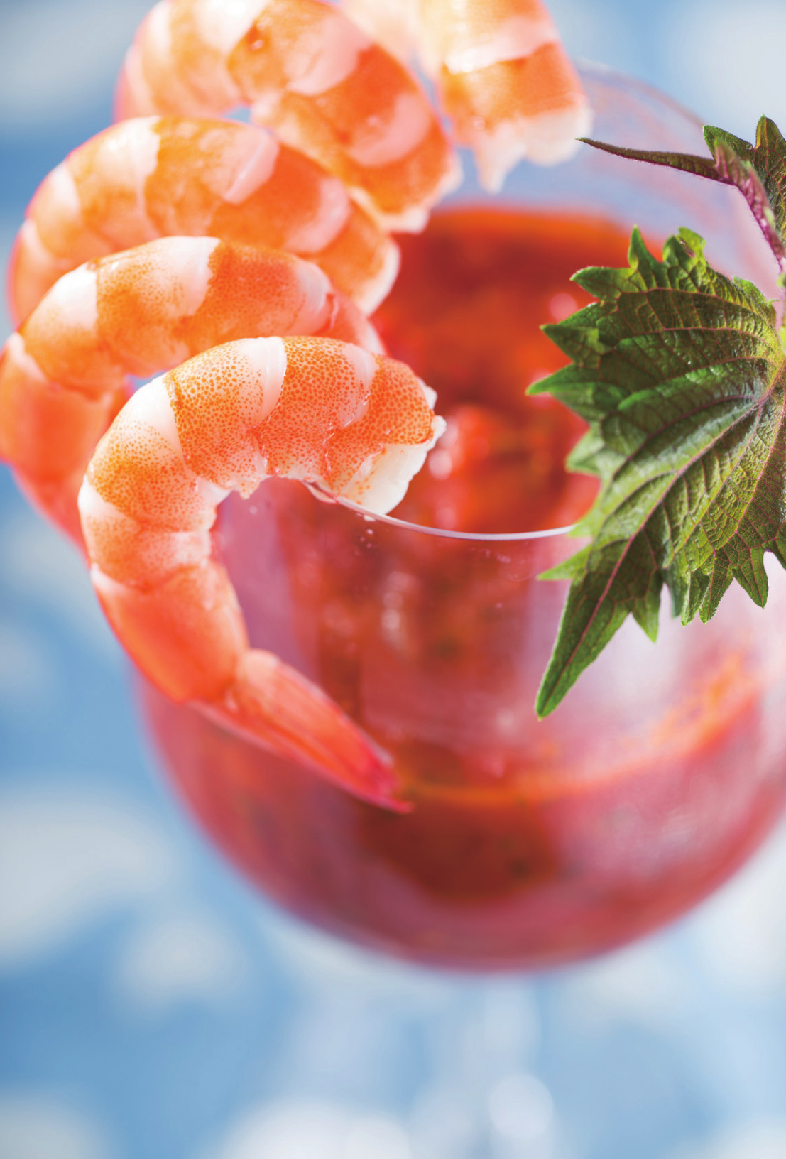 12 第一张采用横构图。背景布换成了天蓝色,以与虾的橙红色形成对比。