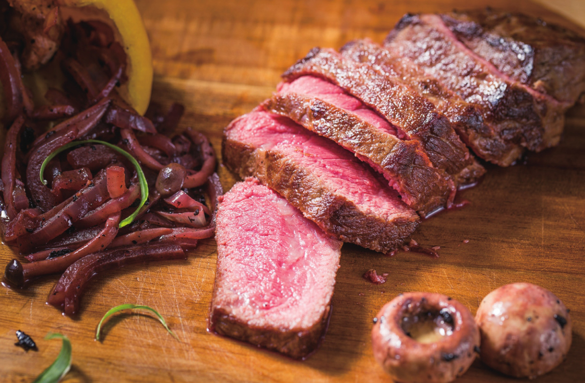 拍摄牛扒时,要有反光肉质才能表现出来。因此,要在拍摄意粉的灯光的基础上再加一盏蜂巢闪光灯,先在右后侧打出逆光,测试一下光线。等人手入镜后,才开始正式拍摄。
