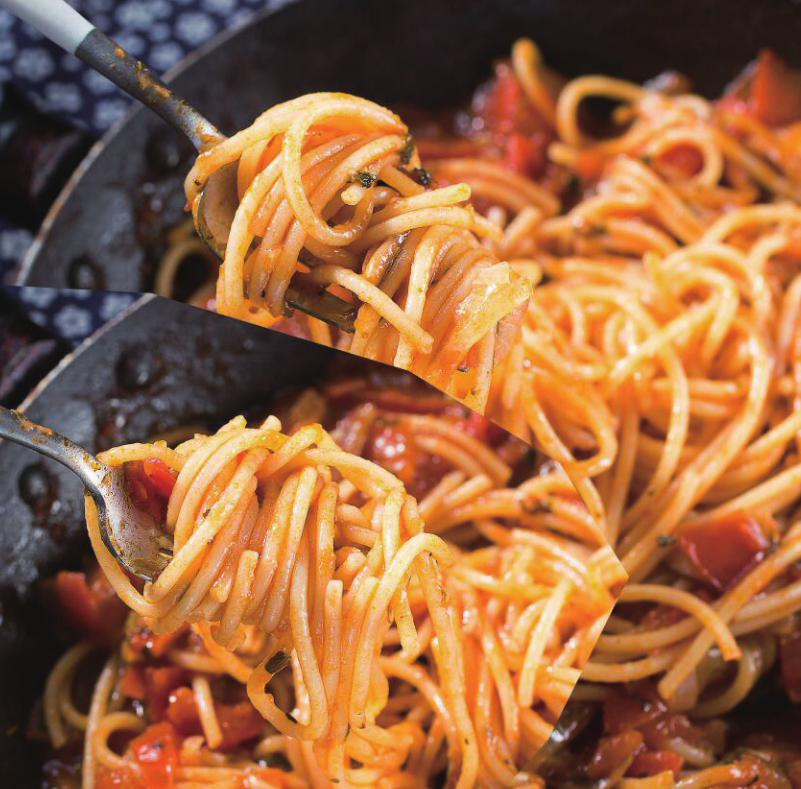 06 有时,也需要多张图片拼合,以形成完美的图片。比如这张意粉图片,它的位置对了,但叉子上的意粉不是很满。