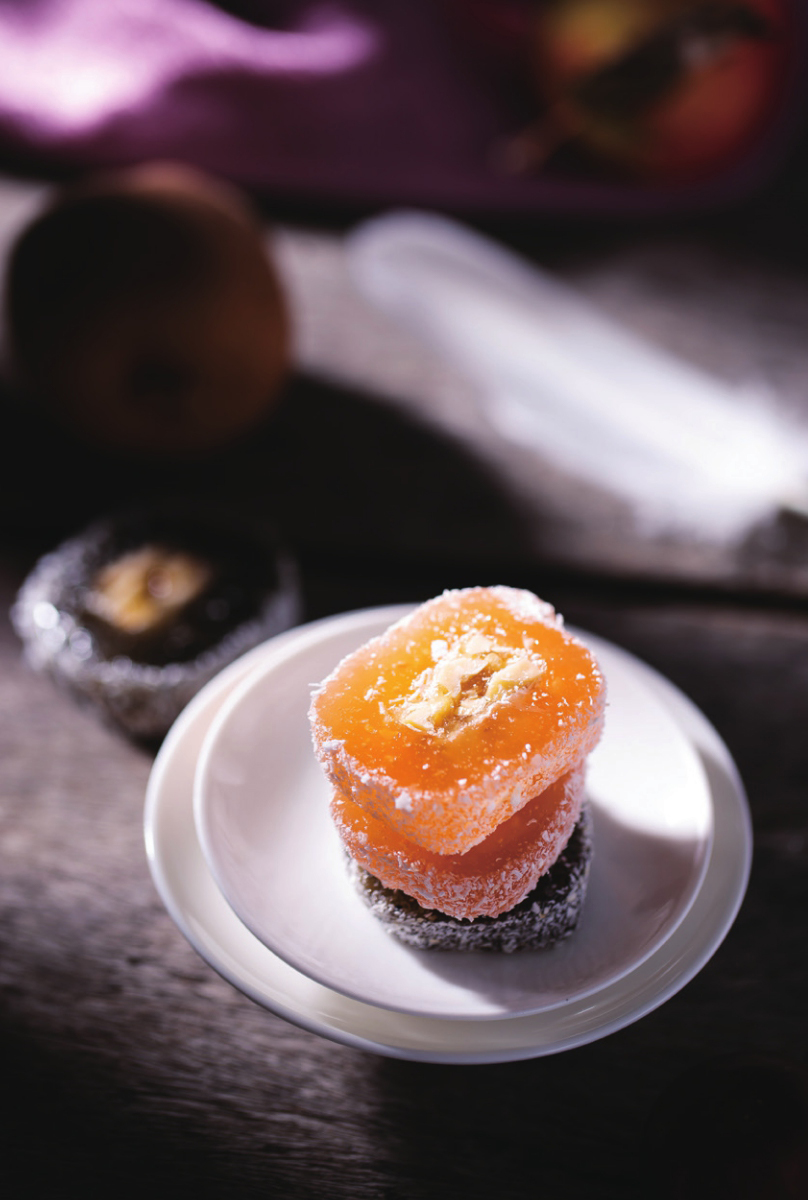 13 我们换一种布光方式:用硬光直打,利用窗格遮挡制造出明暗阴影,来拍摄一块蜜饯。