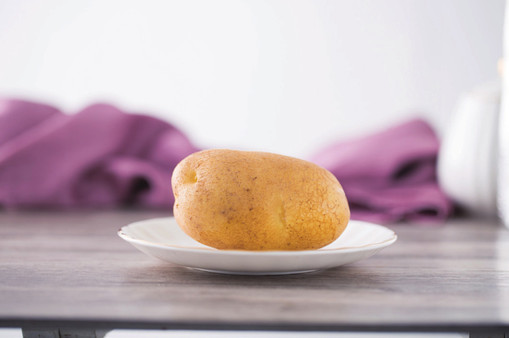 02 用一个土豆来测试光线,测试完毕就可以上我们的主角——面包了(店家拿来的样品不多,如果直接用样品进行试光,面包上的芝麻会掉得到处都是)。