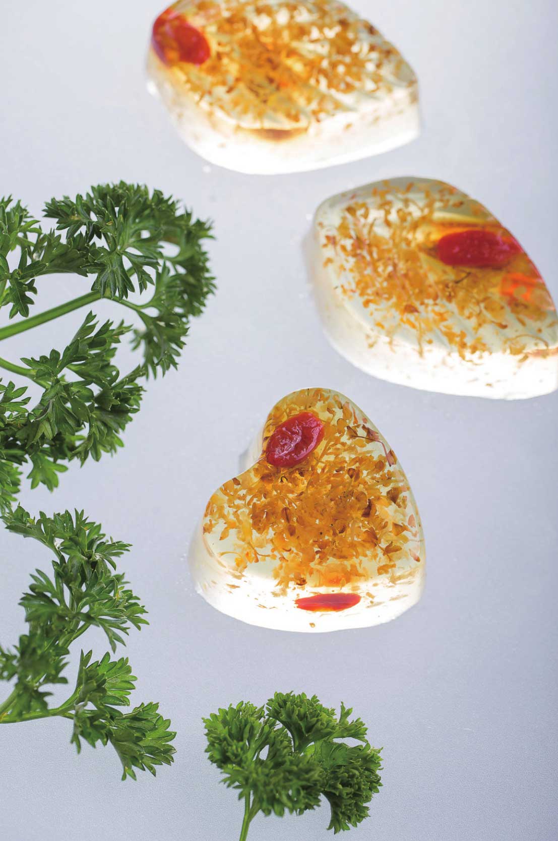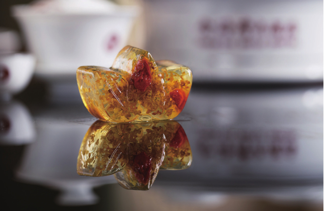 12 用黑色镜面有机玻璃板拍摄的桂花水晶糕。