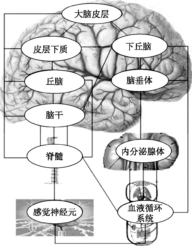 在传统的医学研究中,通常会将人体的内分泌网络系统和神经网络系统分割为两个互不相关的独立系统分别进行研究。但是,越来越多的生理学研究发现,这两大网络系统在调节人体内环境平衡的作用上是密不可分的,正是通过它们之间的相互影响和协调合作,保证了人体生理系统中的内外信息能够及时准确地进行传递,从而保证了机体对各种环境变化的适应,进而维持生命活动的正常进行。神经系统接受刺激,发送电信号,刺激内分泌系统工作;同样,内分泌系统也可以以激素的形式对神经元细胞进行反馈,反过来对神经系统的行为产生影响。两者之间相互作用的过程比较复杂,蕴含很多高效的信息处理机制,同时还体现出生物特有的自适应、自学习和自组织等方面的特性。