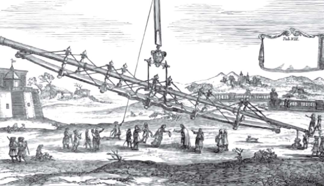 图15:十七世纪的一架大型望远镜,图片引自布兰奇尼