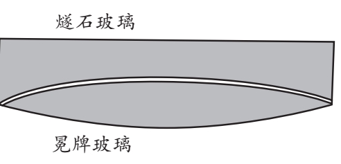 将这一原理应用于目镜构造的方法是:将冕牌玻璃材质的凸透镜与大约一半曲率的燧石凹透镜组合在一起。由于不同玻璃品种的折射率差异很大,不能给出两个曲率之比的确切规定,必须在每种情况下通过试验找到合适的曲率比。找到后,两个透镜将有相同的像差,但方向相反,而冕牌玻璃比燧石玻璃折射力更强,光线将在一个距离比前者焦距多一倍多一点的地方聚焦。这种结合称为消色差物镜。一些早期的消色差物镜是由三个透镜组成的,一个燧石玻璃的双凹面透镜安装在两个冕牌玻璃的双凸面透镜的中间。然而,目前使用的是两个透镜组成的,其形式如图17所示,分别用于小型欧洲望远镜和阿尔文·克拉克先生的所有望远镜。这里所用的冕牌玻璃是一个双面凸透镜,两个面的曲率相等。燧石玻璃透镜的内表面的曲率与冕牌玻璃透镜的曲率相同,这样两个表面就可以精确地结合在一起,而外表面几乎是平的。如果燧石玻璃的分散率正好是冕牌玻璃分散率的两倍,那么这个表面就必须是平的,才能产生消色差;但一般情况下并不是这样。事实上,因为没有两个在不同熔融状态下制成的玻璃品种会具有完全相同的折射和色散能力,因此光学工作者在制作望远镜时,必须找到两个玻璃品种的色散比,然后给燧石玻璃的外表面一个能与冕牌玻璃分散率中和的弯曲度。通常情况下,这个外表面必须稍微凹下去。